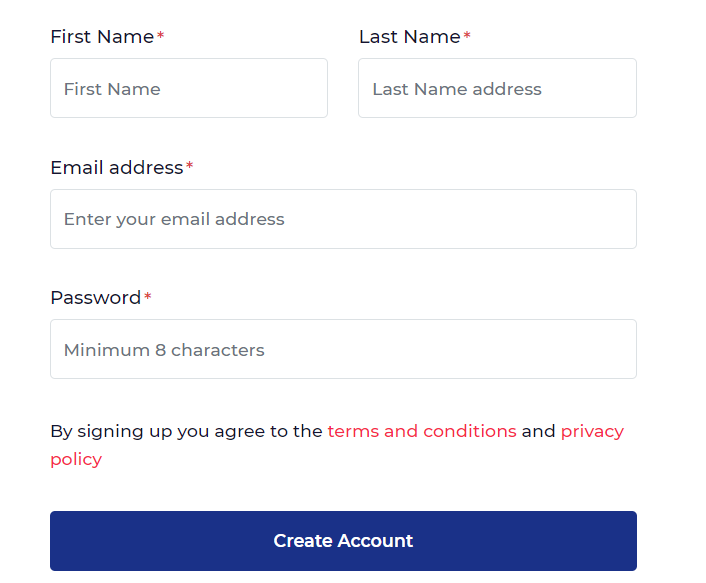 During the registration process, we’ll ask for your full name, email, and password to set up your account.