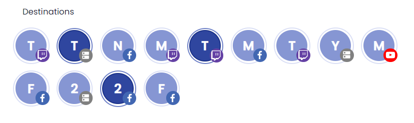 2. Select each destination you want to go live to by clicking on it. If it is highlighted with a blue circle around it, it has been successfully selected.